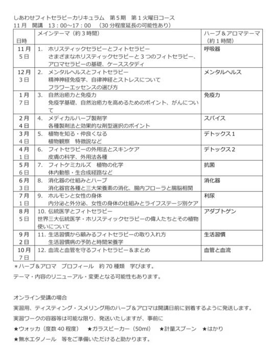 件名 しあわせフィトセラピー年間コースとしてご連絡くださいませ